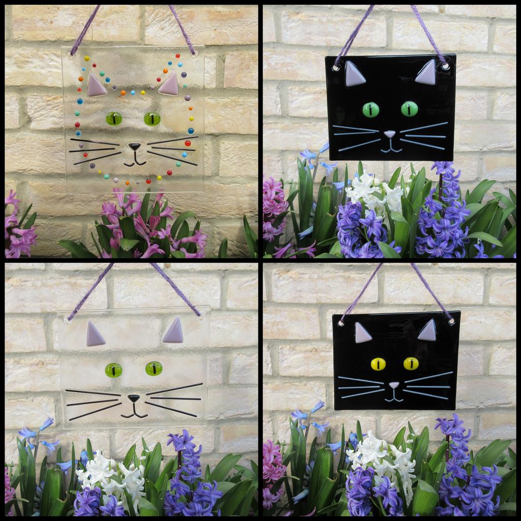 A purple kiln-carved cat suncatcher, perfect to cheer up a moody sky!
