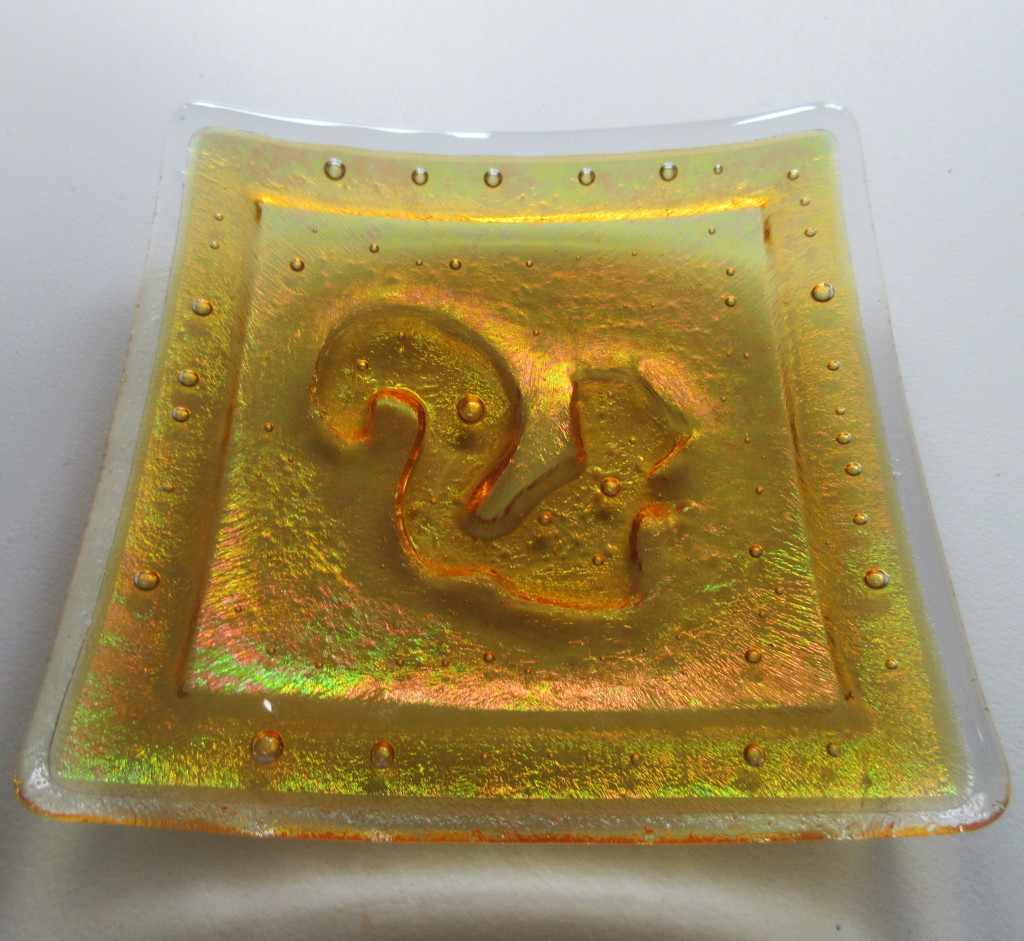 My first ever fused glass piece, cheerfully bright and popular with hedgehog lovers across the country
