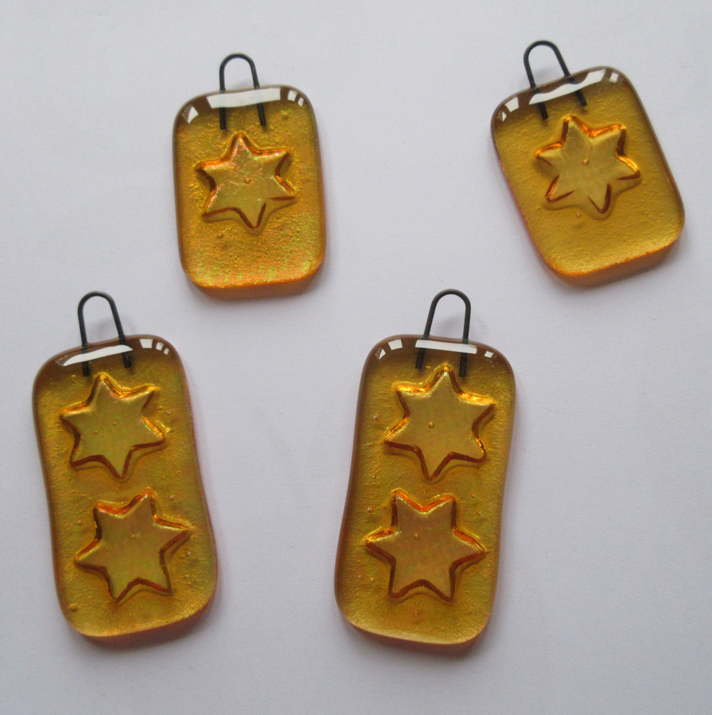 Golden stars to bring some more sparkle to your Christmas tree, made with luminescent glass