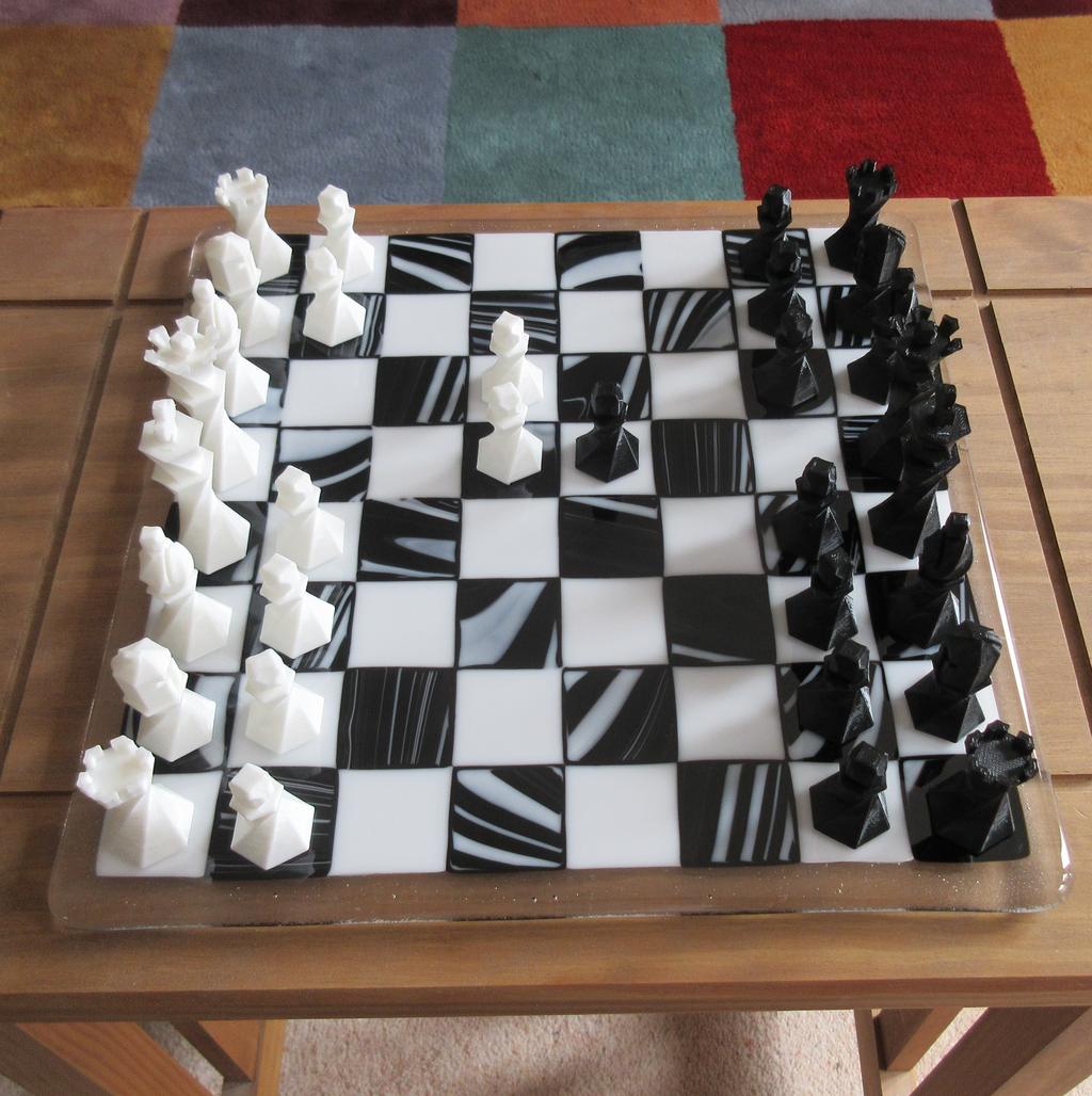 A chunky yet delicate fused glass chess board for high-end intellectual challenge