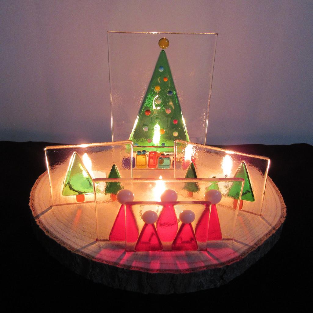 A Christmas gift showing a choir singing in front of the Christmas tree