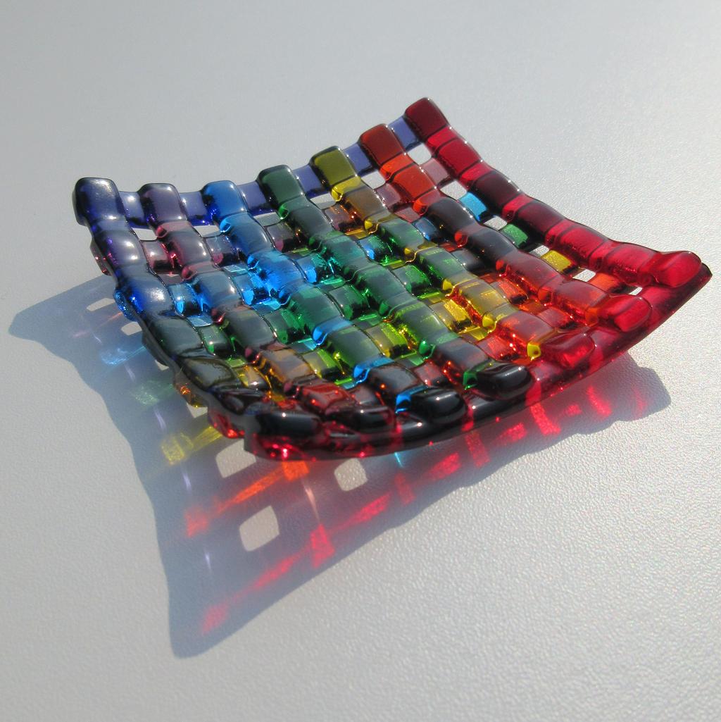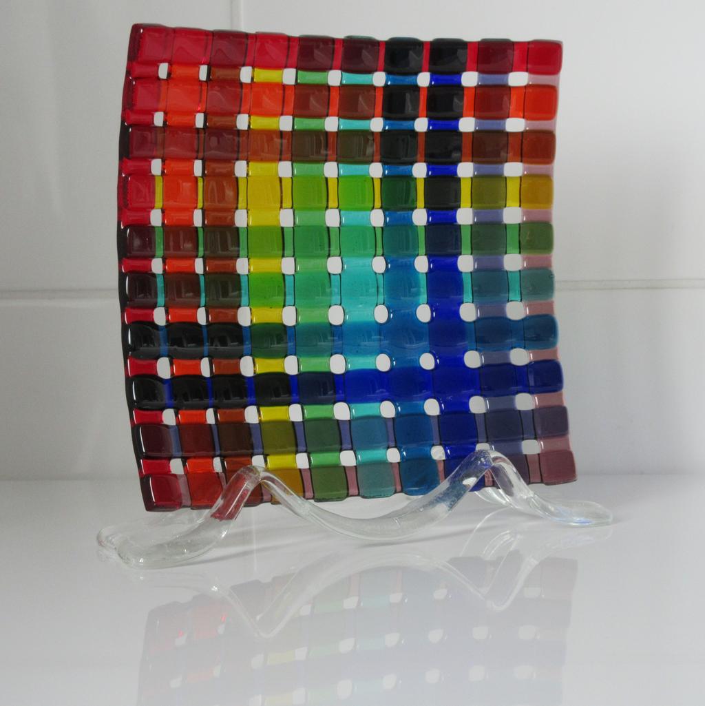 A "rainbow tartan" lattice dish - stylish, tactile and functional